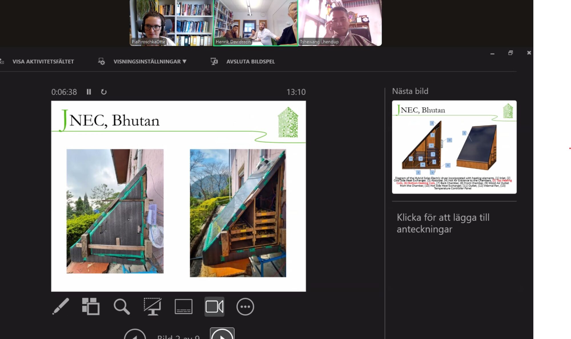 During the meeting Dr. Davidsson presented the current developments of the dryer and the planned activities to be undertaken by him and his team. The new Solar Food project is a continuation of a long-term collaboration between Lund University, Kathmandu University, and the Royal University of Bhutan (JNEC). In an interview, Dr. Davidsson states that: